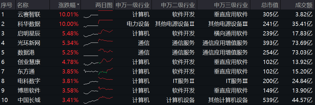 今日(2月24日)大数据产业方向逆市活跃,云赛智联、科华数据涨停封板,启明星辰、光环新网、数据港涨超5%,创业慧康涨逾4%,东方通、电科数字、博思软件、中国长城等个股跟涨。