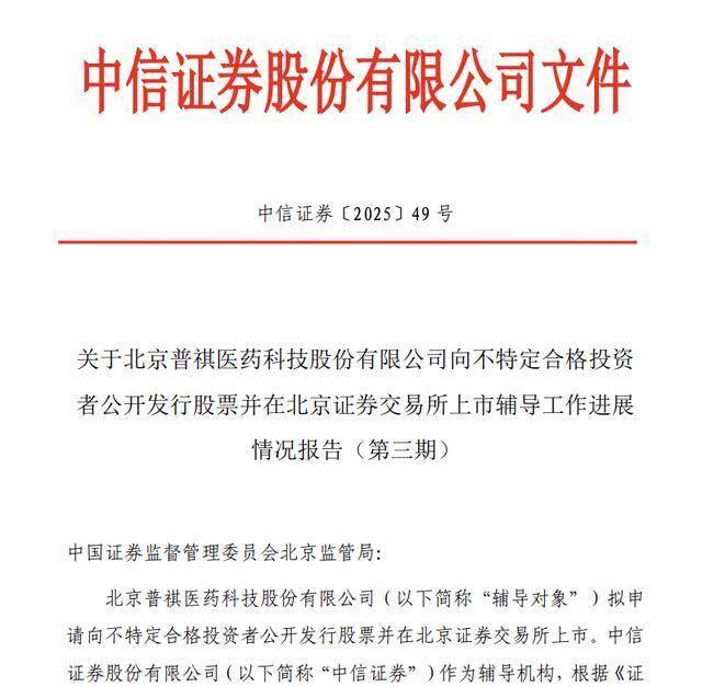瑞财经 刘治颖 近日,北京普祺医药科技股份有限公司(以下简称:普祺医药)发布关于向不特定合格投资者公开发行股票并在北京证券交易所上市辅导工作进展情况报告(第三期)。