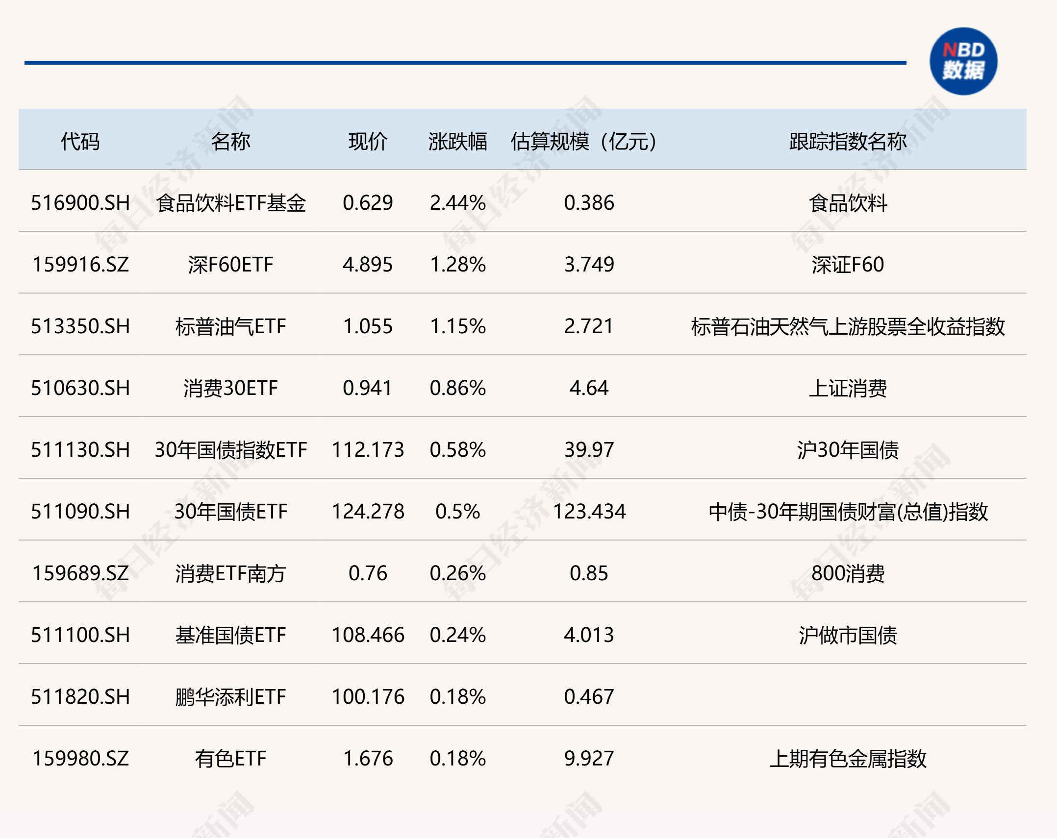 ETF涨跌幅方面,食品饮料ETF基金涨超2%。