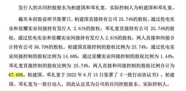 优优绿能的共同控股股东为柏建国和邓礼宽,实际控制人为柏建国和邓礼宽。截至本招股说明书签署日,两人直接和间接控制的股权比例合计为67.60%。柏建国、邓礼宽于2022年6月15日签署了《一致行动协议书》,柏建国、邓礼宽为一致行动人,因此认定其为公司的共同控股股东、实际控制人。