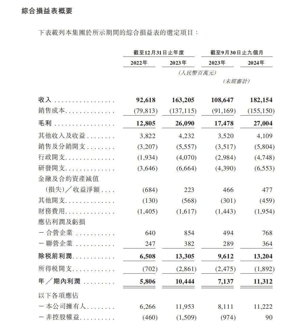 如果分国内和国外市场来看,奇瑞有相当一部分收入是来自海外市场。2022年、2023年及截至2024年9月30日止九个月,奇瑞从海外市场获得的收入分别为330.65亿元、794.81亿元及801.48亿元,分别同期总收入的35.7%、48.7%及44.0%。相比国内市场,出口车型的利润会更高一点。