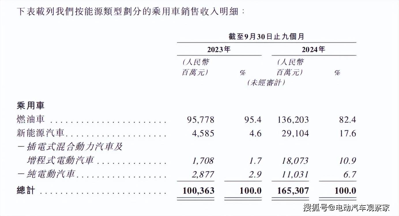 从数据上看,截至2024年9月30日止九个月,奇瑞的燃油车销量较2023年同期增长61.9%。截至2024年9月30日止九个月,奇瑞的新能源汽车销量较2023年同期增长246.5%。