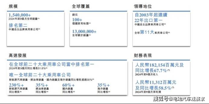 根据弗若斯特沙利文的资料,截至2024年9月30日,奇瑞已经拥有1,075家海外经销商,排名中国自主品牌乘用车公司前列。