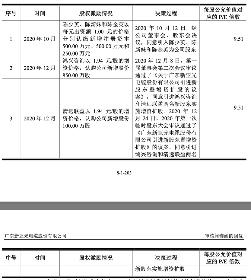 报告期内,新亚电缆共进行3次股权激励,均已做股份支付会计处理。而这一操作却被业内人士指责为涉嫌利益输送。