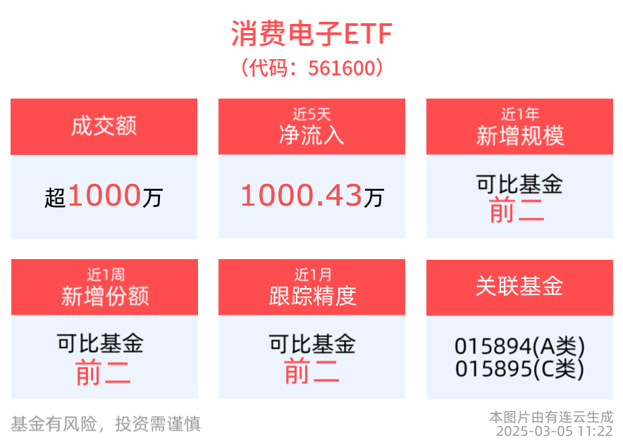 消费电子ETF(561600),场外联接(A类:015894;C类:015895)。