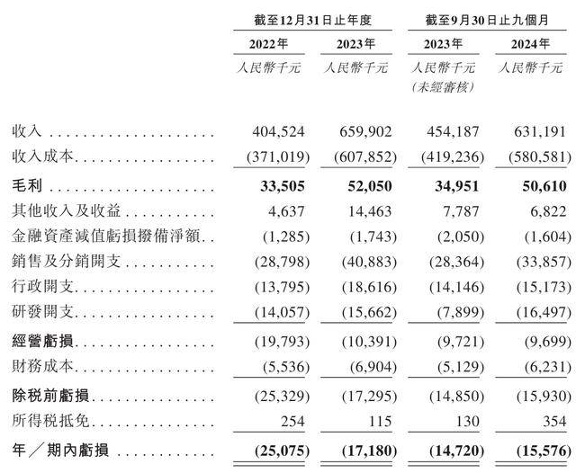 2022年至2024年前三季度(下称“报告期”),白鸽在线收入分别为4.05亿元、6.60亿元及6.31亿元;期内亏损2507.5万元、1718万元及1557.6万元,亏损在2023年收窄后,又于2024年前三季度扩大,累计亏损5783万元。