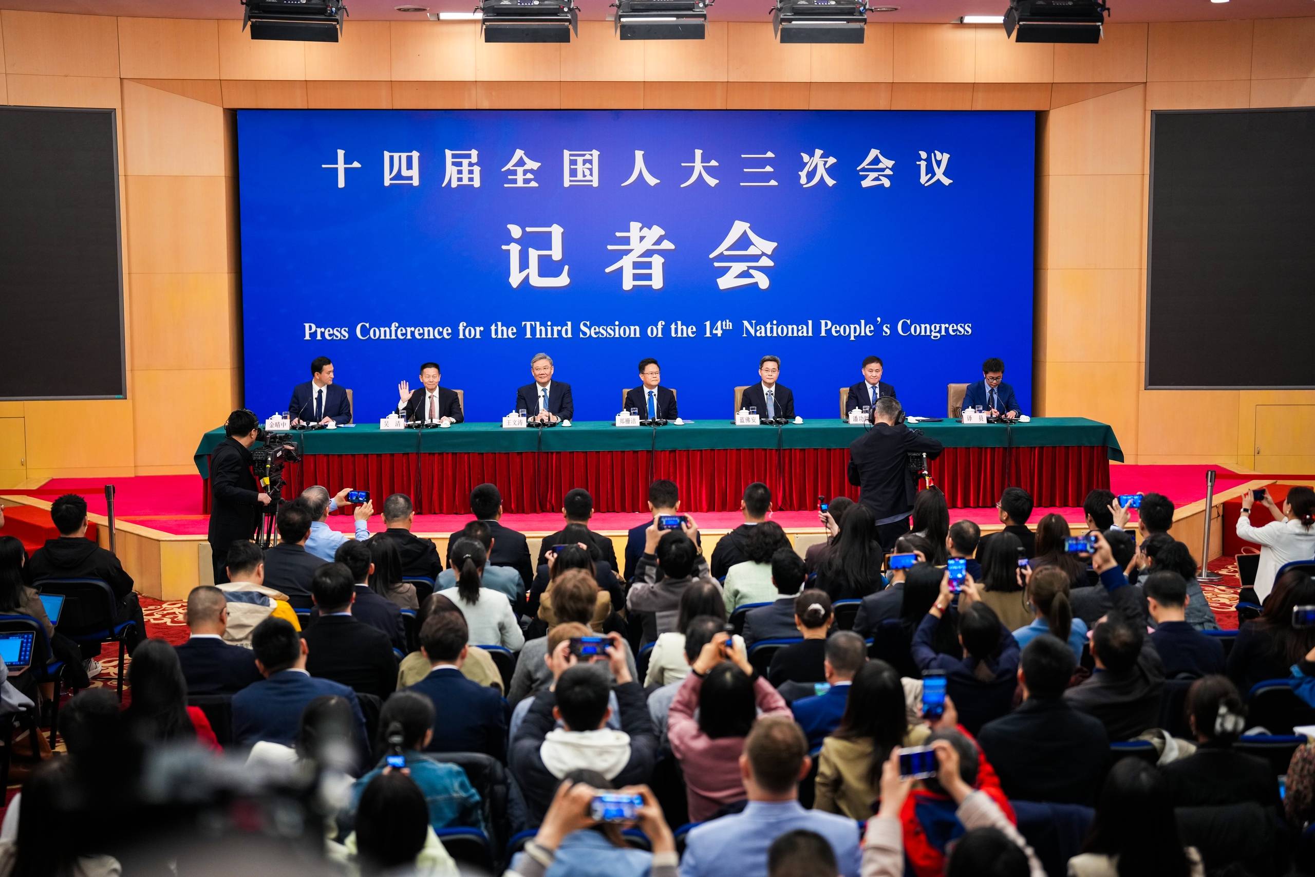 3月6日,十四届全国人大三次会议举行记者会,国家发展和改革委员会主任郑栅洁、财政部部长蓝佛安、商务部部长王文涛、中国人民银行行长潘功胜、中国证券监督管理委员会主席吴清就发展改革、财政预算、商务、金融证券等相关问题回答中外记者提问。