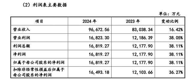 2024年,公司实现营业收入9.67亿元,实现归属母公司股东净利润、扣除非经常性损益后归属母公司股东净利润分别为1.68亿元和1.65亿元。