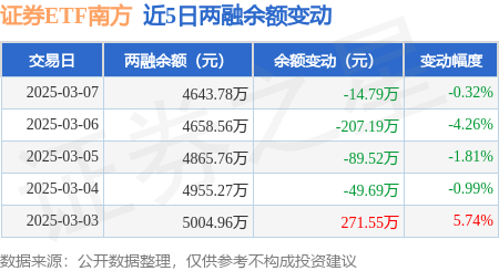 证券之星消息,3月7日,证券ETF南方(512900)融资买入427.71万元,融资偿还439.22万元,融资净卖出11.51万元,融资余额4416.43万元。