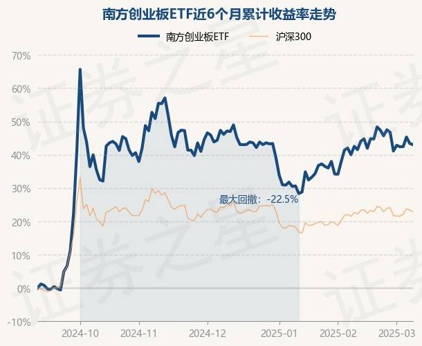 证券之星消息,3月10日,南方创业板ETF最新单位净值为2.3997元,累计净值为1.1792元,较前一交易日下跌0.25%。历史数据显示该基金近1个月上涨0.72%,近3个月下跌2.78%,近6个月上涨43.05%,近1年上涨23.4%。该基金近6个月的累计收益率走势如下图: