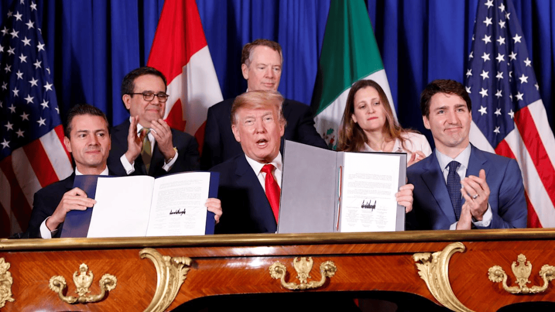 该协议由特朗普在2018年11月完成谈判,随后他和时任加拿大总理及墨西哥总统一同出席了协议签署仪式。根据美国国会官网的法案存档记录,该协议于 2020年1月被正式通过生效。
