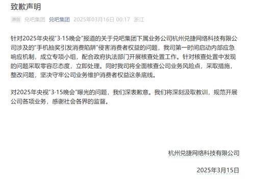 3月16日凌晨,兑吧发布致歉声明,称公司第一时间启动内部应急响应机制,成立专项小组,配合政府执法部门开展核查处置工作。