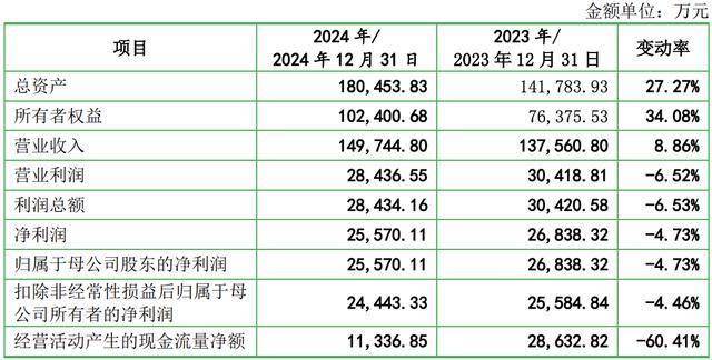 另据招股书披露,优优绿能2024年经审阅的综合毛利率(不考虑质保费计入营业成本)为34.62%,较2023年下降1.63个百分点;经审阅的净利润约为2.56亿元,同比下降4.73%;扣非后净利润2.44亿元,同比下降4.46%。