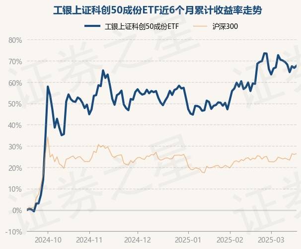 证券之星消息,3月18日,工银上证科创50成份ETF最新单位净值为1.119元,累计净值为0.7798元,较前一交易日上涨0.6%。历史数据显示该基金近1个月上涨7.62%,近3个月上涨10.79%,近6个月上涨67.67%,近1年上涨31.66%。该基金近6个月的累计收益率走势如下图: