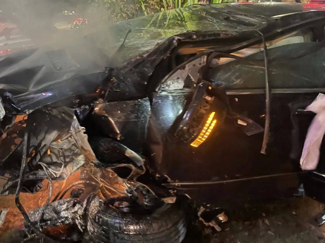 2025年3月16日晚上20:26,刚刚结束周末的冯华印如往常一般乘坐网约车回家,车辆行驶到广州南沙进港大道南沙牌坊前十字路口,正在等红绿灯的时候,在他前方30米处的一台黑色轿车突然失控冲向路口花基,并撞到了灯柱。火光瞬间从车前盖窜出来。