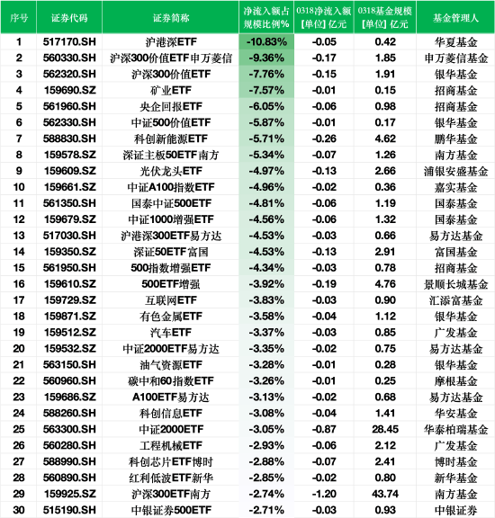 Wind数据显示,3月18日,华夏沪港深ETF遭净赎回0.05亿元,当日资金净流出额占最新规模比例为10.83%。