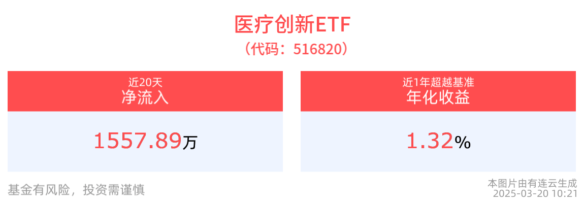 规模方面,医疗创新ETF最新规模达17.97亿元。资金流入方面,医疗创新ETF近20个交易日内,合计“吸金”1557.89万元。