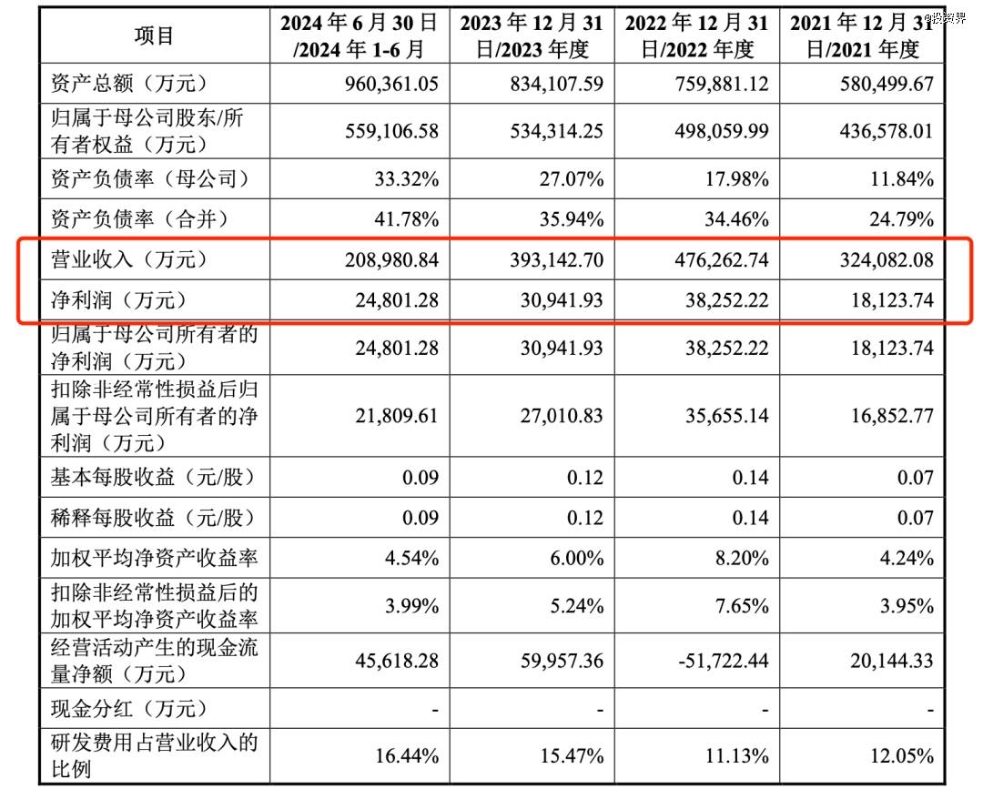 这也直接带来了营收的上涨。2021年-2023年及2024上半年,屹唐股份实现营收分别为32.41亿元、47.63亿元、39.31亿元、20.9亿元;归母净利润分别为1.81亿元、3.83亿元、3.09亿元、2.48亿元。