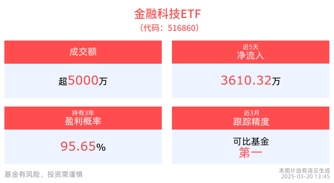 跟踪精度方面,截至2025年3月19日,金融科技ETF近3月跟踪误差为0.040%,在可比基金中跟踪精度最高。