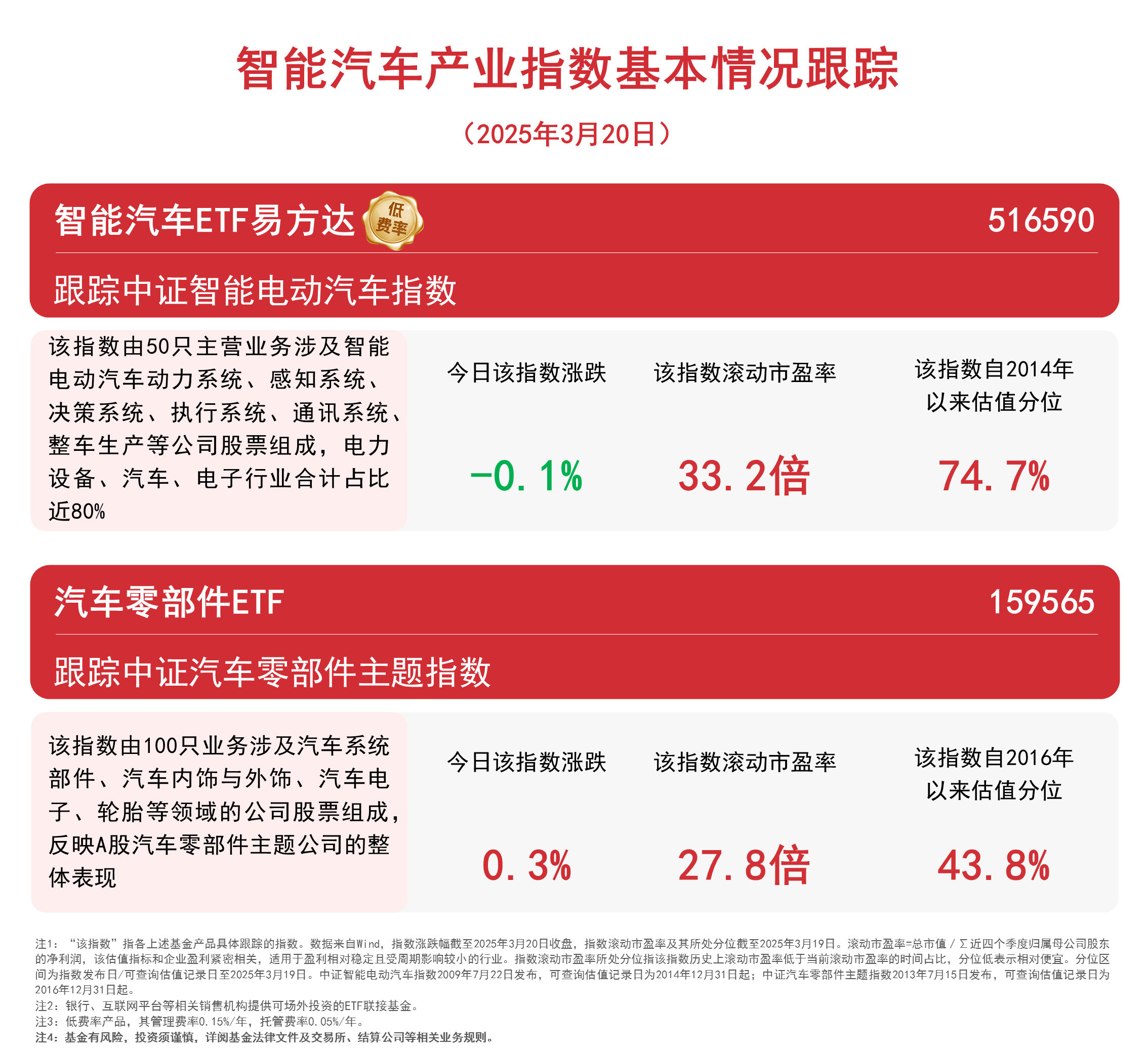 截至收盘,中证汽车零部件主题指数上涨0.3%,中证智能电动汽车指数下跌0.1%。