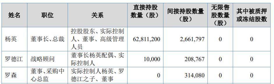 招股书显示,杨英、罗德江两人均毕业于重庆大学工商管理专业,杨英目前担任公司董事长、总裁,罗德江为公司战略顾问,两人儿子罗森担任公司董事、采购中心总监。