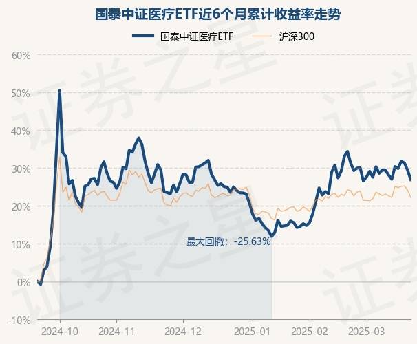 证券之星消息,3月21日,国泰中证医疗ETF最新单位净值为0.4243元,累计净值为0.4243元,较前一交易日下跌1.92%。历史数据显示该基金近1个月下跌5.54%,近3个月上涨1.6%,近6个月上涨26.96%,近1年下跌2.55%。该基金近6个月的累计收益率走势如下图: