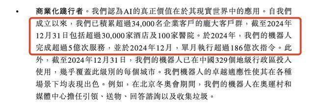值得一提的是,自云迹科技成立以来,其已积累超过34,000名企业客户的庞大客户群,截至2024年 12月31日包括超过30,000家酒店及100家医院。于2024年,其机器人完成超过5亿次服务,并于2024年12月,单月执行超过186亿次指令。