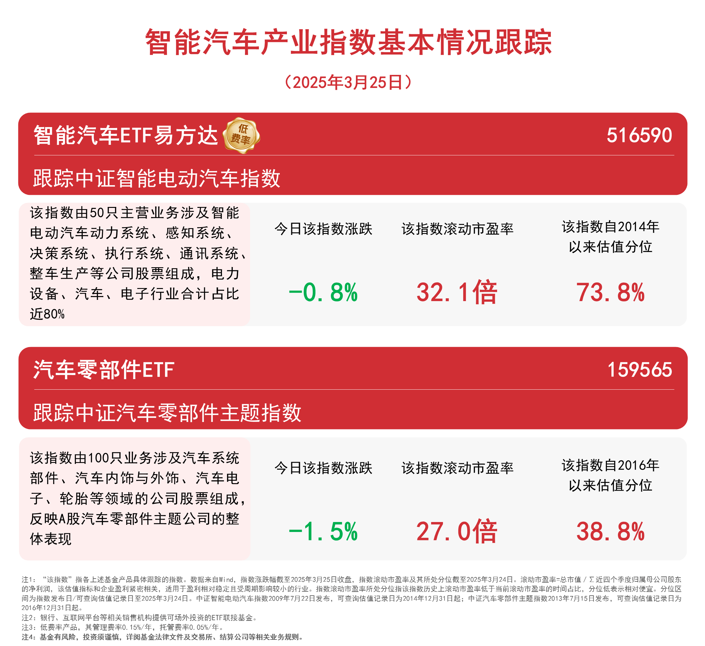 截至收盘,中证智能电动汽车指数下跌0.8%,中证汽车零部件主题指数下跌1.5%。