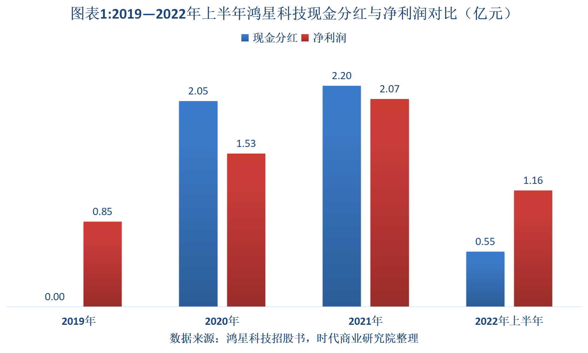 鸿星科技于2023年3月3日披露的招股书显示,其报告期为2019—2022年上半年。该版招股书显示,自2020年以来,鸿星科技已大手笔分红近5亿元。