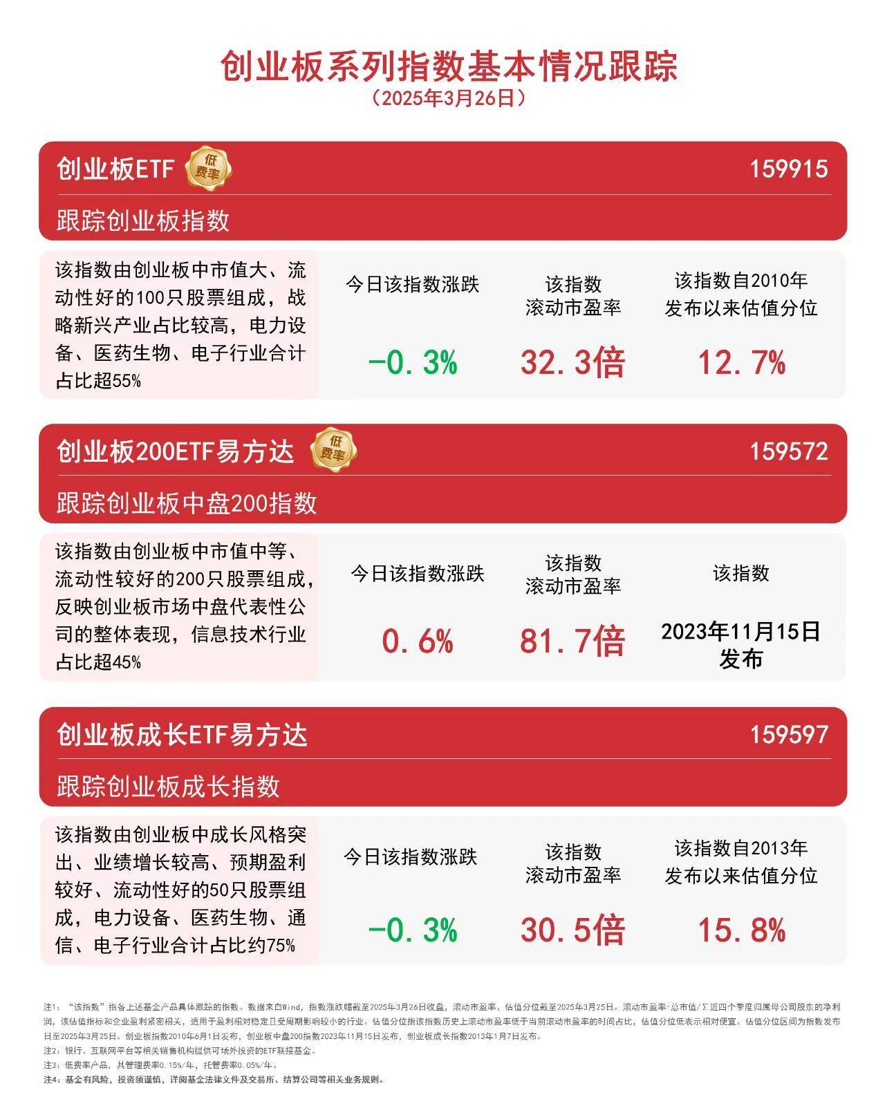 截至收盘,创业板中盘200指数上涨0.6%,创业板指数、创业板成长指数均下跌0.3%。截至昨日,创业板指数、创业板成长指数的滚动市盈率分别为32.3倍和30.5倍,估值均位于指数发布以来15%分位左右,配置价值受关注。
