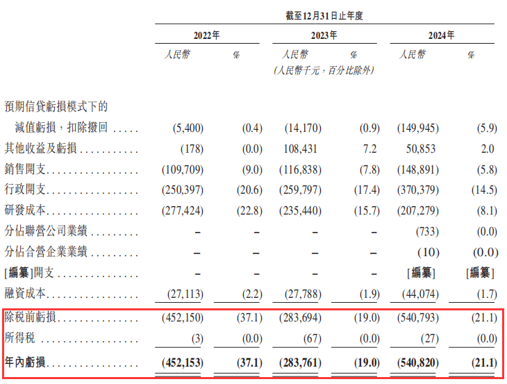 尽管营收从2022年12.18亿元增至2024年25.57亿元逾倍,但博泰车联网同期三年净亏损分别为4.52亿、2.84亿和5.41亿元,三年累计亏损超12亿元;经调整后的净亏损分别为3.91亿元、2.18亿元、3.52亿元,亏损主因则是包括研发高投入及市场拓展成本。