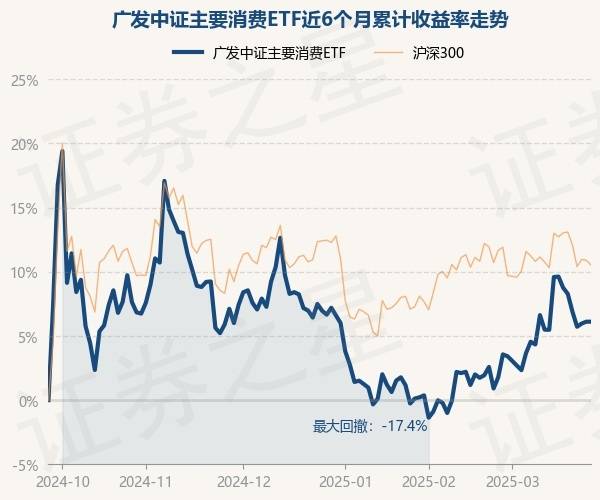 证券之星消息,3月26日,广发中证主要消费ETF最新单位净值为0.8935元,累计净值为0.8935元,较前一交易日上涨0.0%。历史数据显示该基金近1个月上涨4.56%,近3个月下跌0.21%,近6个月上涨6.43%,近1年下跌6.13%。该基金近6个月的累计收益率走势如下图: