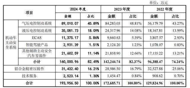 公司是国内少数具备汽车制动防抱死系统(ABS)、电子稳定控制系统(ESC)、电子制动控制系统(EBS)、电子驻车制动系统(EPB)、电控空气悬架系统(ECAS)等主动安全系统正向开发能力的企业,核心产品已涵盖气压制动/液压制动、电控制动/线控制动等主流技术路线,广泛应用于商用车、乘用车及摩托车的制动安全等领域。