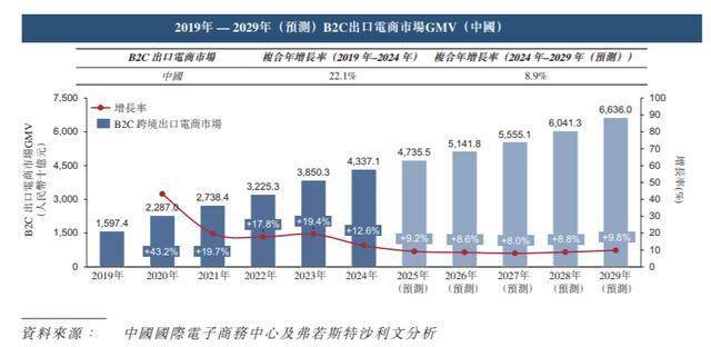 中国B2C出口电商市场的GMV增长迅速,由2019年的人民币15,974亿元增至2024年的人民币43,371亿元,复合年增长率为22.1%。