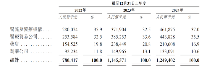 不过,在本次报告期内(2022年至2024年),新荷花来自医疗贸易公司的收入占比分别为32.5%、33.6%和35.5%,来自药店收入占比分别为19.8%、20.8%和16.9%,合计销售占比分别为52.3%、54.4%和52.4%。