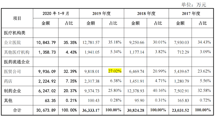 界面新闻注意到,2019年,新荷花来自医贸公司的销售收入占比为27.02%,来自药店收入占比为6.38%,对比来看,来自医疗贸易公司和药店的收入占比确有所上升,而原来自制药企业的销售收入占比有25.8%,但在本次报告期的销售占比下滑至13%以下。