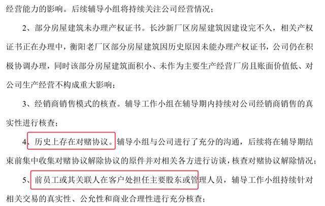 此外,公司历史上存在对赌协议。辅导小组与公司进行了充分的沟通,后续将在辅导期结束前集中收集对赌协议解除协议的原件并对相关各方进行访谈,核查对赌协议解除情况。