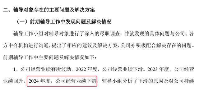 据报告,恒飞电缆2024年度经营业绩下滑,辅导小组分析了下滑的原因及对公司持续经营能力的影响。后续辅导小组将持续关注公司经营情况。