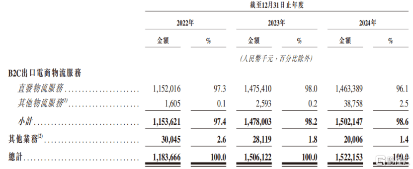 2022年、2023年及2024年(报告期),公司通过直发物流服务运送的包裹总量中分别有63.0%、59.1%及51.1%来自跨境电商平台。