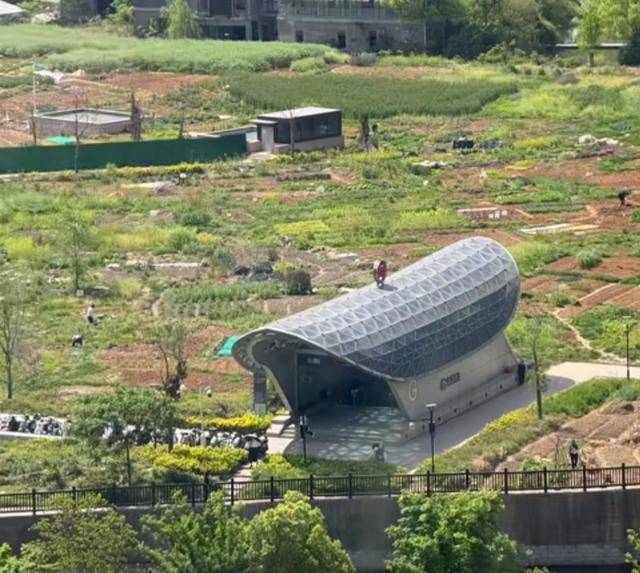 记者了解到,视频中的建筑为杭州创景路地铁站G出入口,于2022年9月22日开通。据杭州网此前报道,创景路站出入口是杭州地铁目前唯一的一个异型出入口。G出入口位于余杭中央公园内,呈“马鞍形”,出入口顶部铺设蓝色玻璃穹顶,穹顶中央。