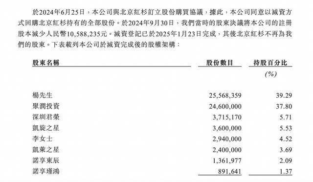 其中,北京红杉是溜溜果园A轮投资者,原本是溜溜果园第三大股东。2024年6月25日,溜溜果园以减资的方式赎回北京红杉持有的全部股权,其后北京红杉不再为公司的股东。