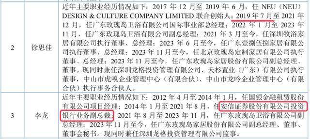 李龙是董事长徐伟的女婿,加入玫瑰岛之前,曾任安信证券股份有限公司投资银行业务副总裁。