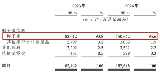 招股书显示,椰子水为IFBH贡献了九成以上的收入,这一比例仍在增加。同时,IFBH也在招股书中提及了单品类规模受限的问题。