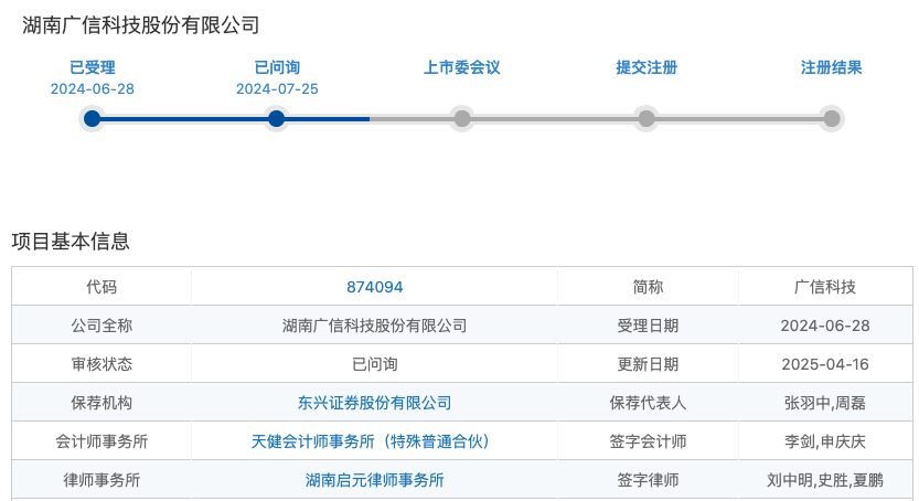 北交所近日发布上市委会议公告,将于2025年4月23日审核湖南广信科技股份有限公司(以下简称“广信科技”)的上市申请。