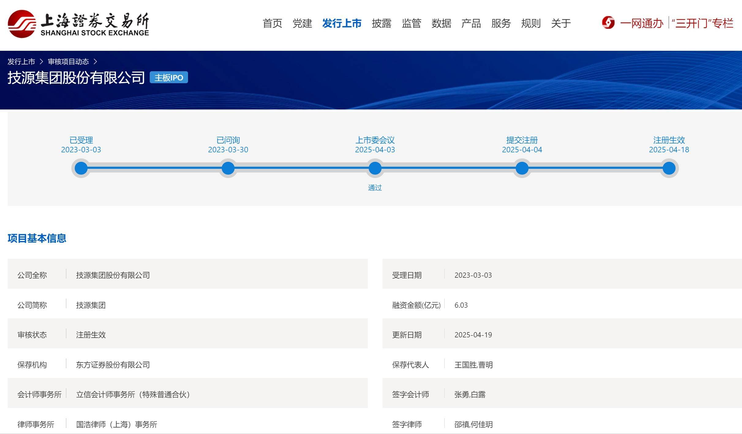 每经AI快讯,4月19日,上交所技源集团股份有限公司IPO审核状态变更为注册生效。