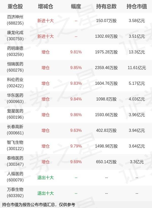 证券之星消息,4月21日银华基金旗下马君 王帅管理的银华中证创新药产业交易型开放式指数基金公布一季报,近1年净值增长率6.45%。与上一季度相比,该基金前十大重仓股新增百济神州,康龙化成;并对药明康德增仓176.51万股,为该基金第一大重仓股;人福医药,万泰生物等退出前十大重仓股;详细数据如下:
