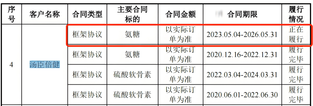 「创业最前线」注意到,报告期内,技源集团与汤臣倍健共签订了四个框架协议,其中三个已经履行完毕。正在履行的主要合同标的为氨糖,将于2026年5月31日到期。
