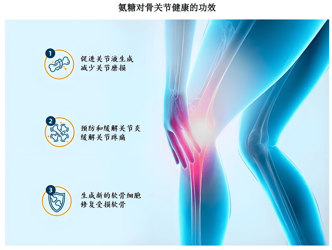 公司的另一核心产品是氨基葡萄糖,简称氨糖,是人体关节软骨基质中合成蛋白聚糖所必需的物质。氨糖能够刺激软骨细胞的生长、抑制关节软骨的分解,同时还具有抗炎作用,可缓解骨关节炎的疼痛症状,改善关节功能,是关节健康领域最为广泛使用的营养素之一。