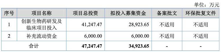 招股书显示,天广实本次公开发行股票数量不超过470.51万股,拟募集资金为3.49亿元,其中2.89亿元用于创新生物药研发及临床项目投入,6000万元用于补充流动资金,募资额较前次缩水近八成。