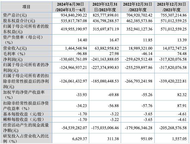 截至2024年6月30日,天广实尚未盈利且存在累计未弥补亏损,累计未弥补亏损为-15.64亿元。招股书中,天广实解释称,主要系公司专注于创新型生物制药的研发,该类产品研发周期长、资金投入大。报告期内,公司核心及主要产品仍处于研发阶段,距获批仍需一定时间,尚未取得对应收入,且同时产生较大规模的研发投入。